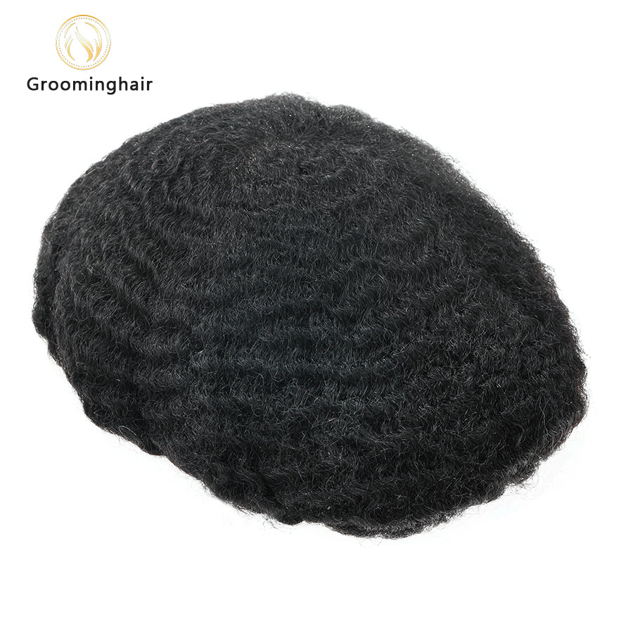 Prótesis capilar de piel fina con base de polímero, ondulada, para hombre, 6 mm